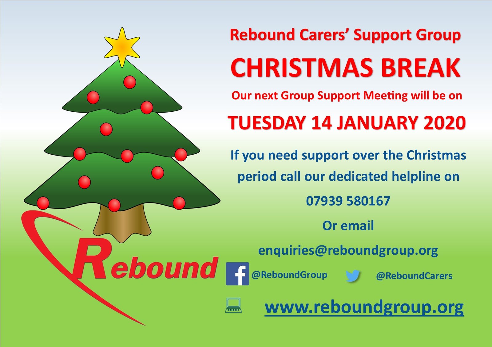 Our final Group Support Meeting of the year has now taken place, and our next meeting will be on Tuesday 14 January 2020. If you need any support over the Christmas period please call our Helpline on 07939 580167 or email enquiries@reboundgroup.org. May we wish you a peaceful Christmas and a Happy New Year.