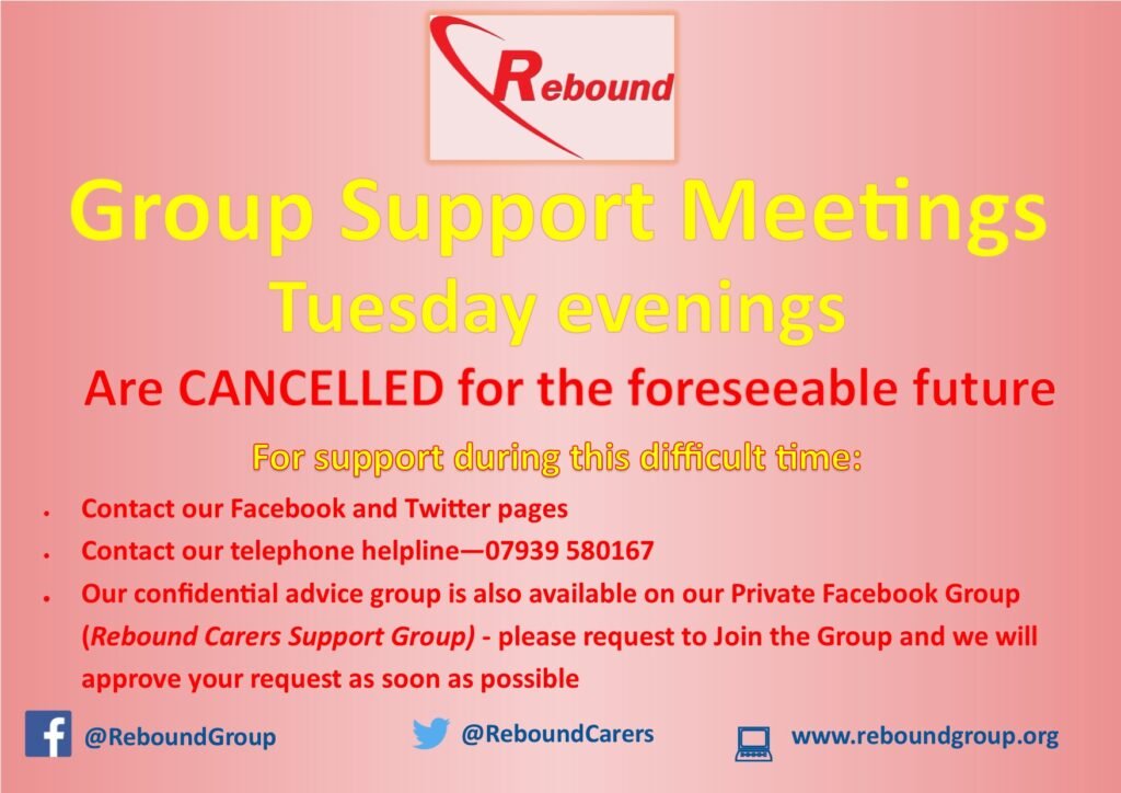 In light of the recent Government restrictions, to try to combat this awful virus, Rebound will not hold their usual two weekly group meetings until further notice.