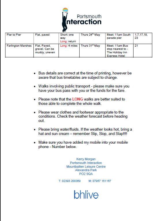 Further details about the service can be found on the website. In the meantime, copies of their current exercise and walking programmes are set out below.