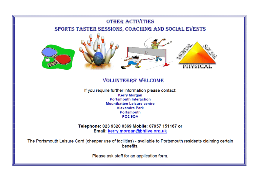 Portsmouth Interaction provides a service for people living within the city who are experiencing ill mental health. Through offering a variety of low cost recreational activities from fitness to wellbeing, the scheme looks to pave a way for people to build new skills and gain confidence to allow them to move back into mainstream groups. Support staff, who are specially trained to support clients with a range of conditions, will be on hand to help along the way, offering regular progress reviews.